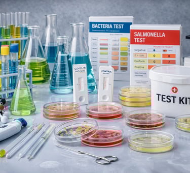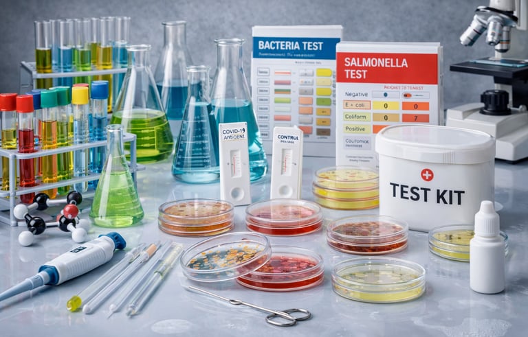 Cam malzemeler, test kitleri, mikrobiyolojik analiz ürünleri