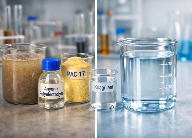 Atık su arıtmadan endüstriyel kullanıma uygun kimyasallar.
